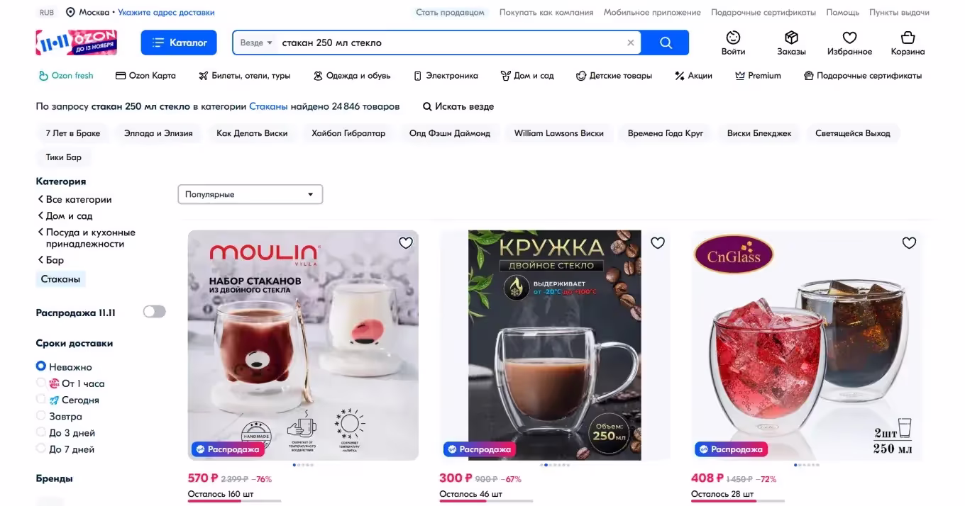 - Возможность перейти к карточке товара.