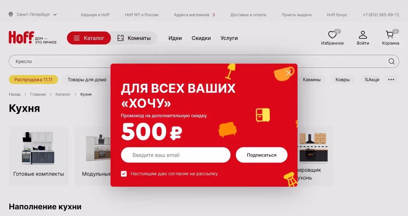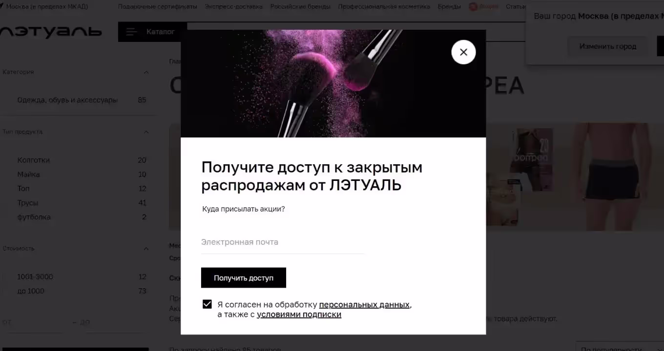 Поп-апы (pop-ups) выглядят как баннеры, которые появляются поверх основного контента сайта. В них пишут про акции, специальные предложения, запрашивают подтверждение действий на сайте и т. д.
