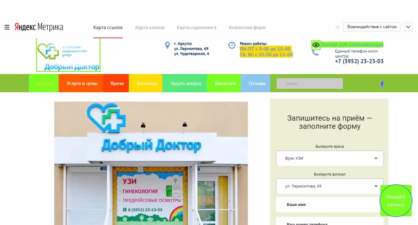 1. Карта кликов — показывает, по каким элементам на сайте кликают и сколько раз.