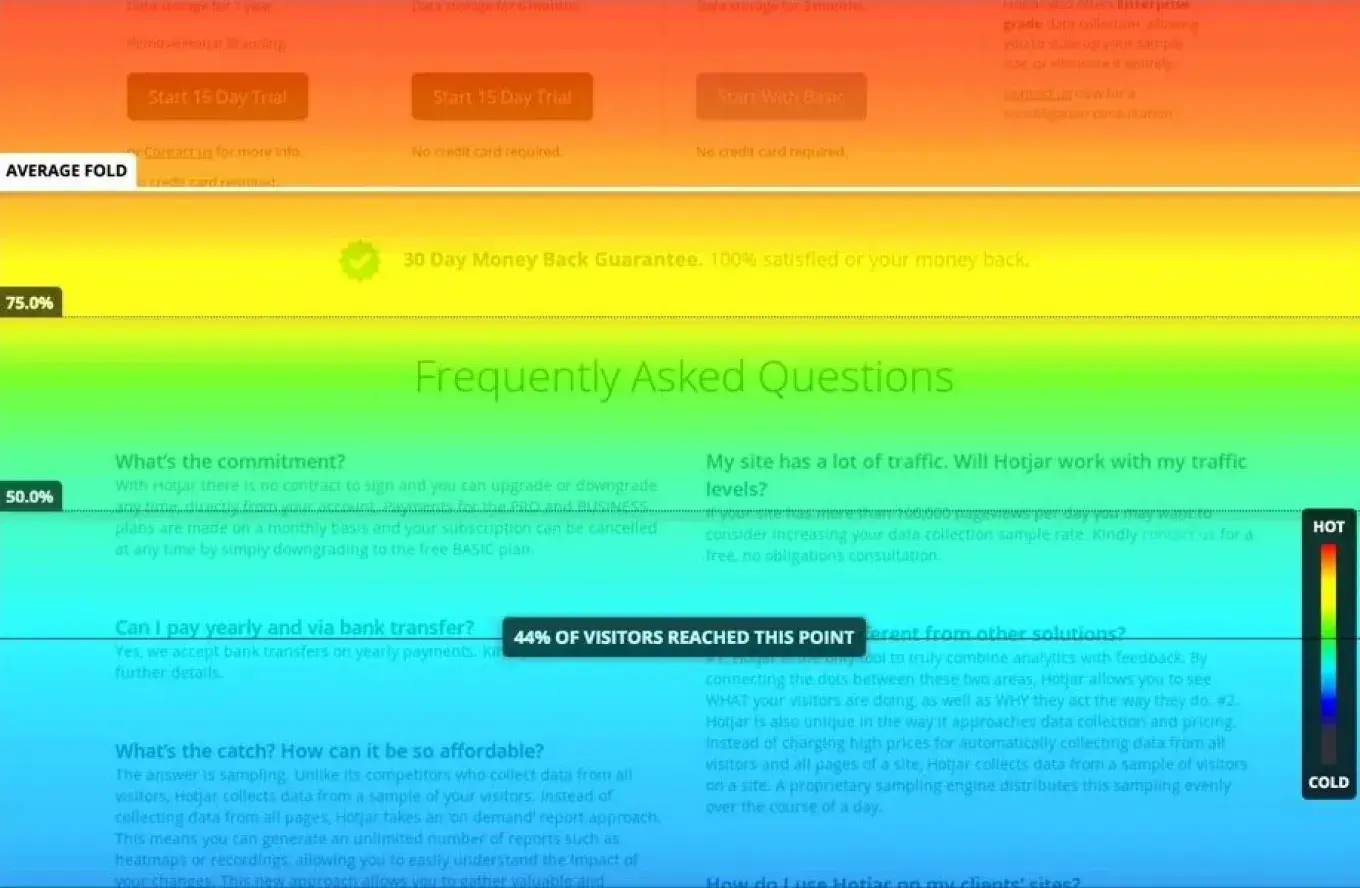 Схема, которая показывает передвижения курсора на сайте: куда люди его наводят и на какие элементы кликают. Тепловая карта помогает понять, что привлекает внимание пользователя, а что отвлекает от выполнения целевых действий. Сервисы: mouseflow, lucky orange.