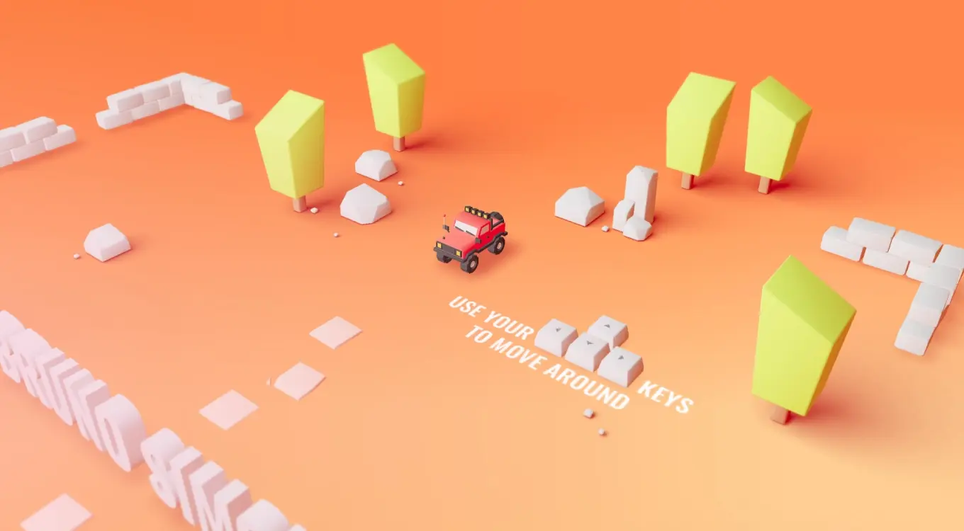 Портфолио дизайнера Bruno Simon: здесь курсор — это миниатюрная 3D-машинка, которой можно управлять прямо на сайте. Это не просто навигация, а часть общего взаимодействия.