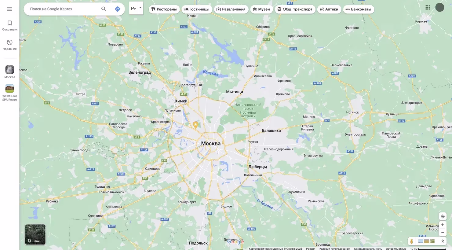 Здесь пространственная метафора — реальная географическая карта, которую можно масштабировать, перемещаться на ней, искать конкретное местоположение, в общем она аналогична реальной карте.
