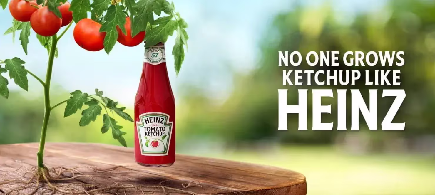 А вот Heinz подчеркивает не вкус своего продукта, а состав. И теперь мы точно знаем, что это максимально натуральный соус из свежих помидоров.