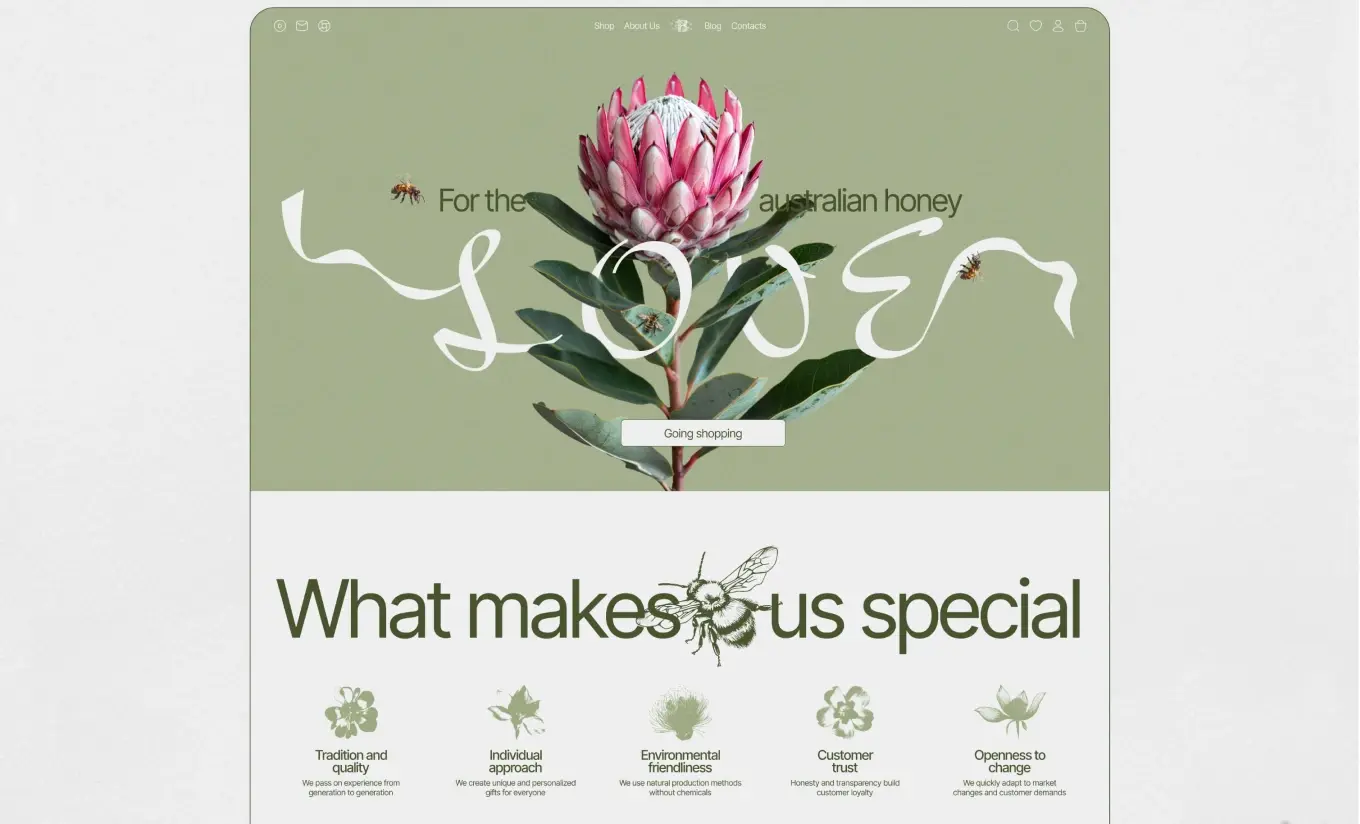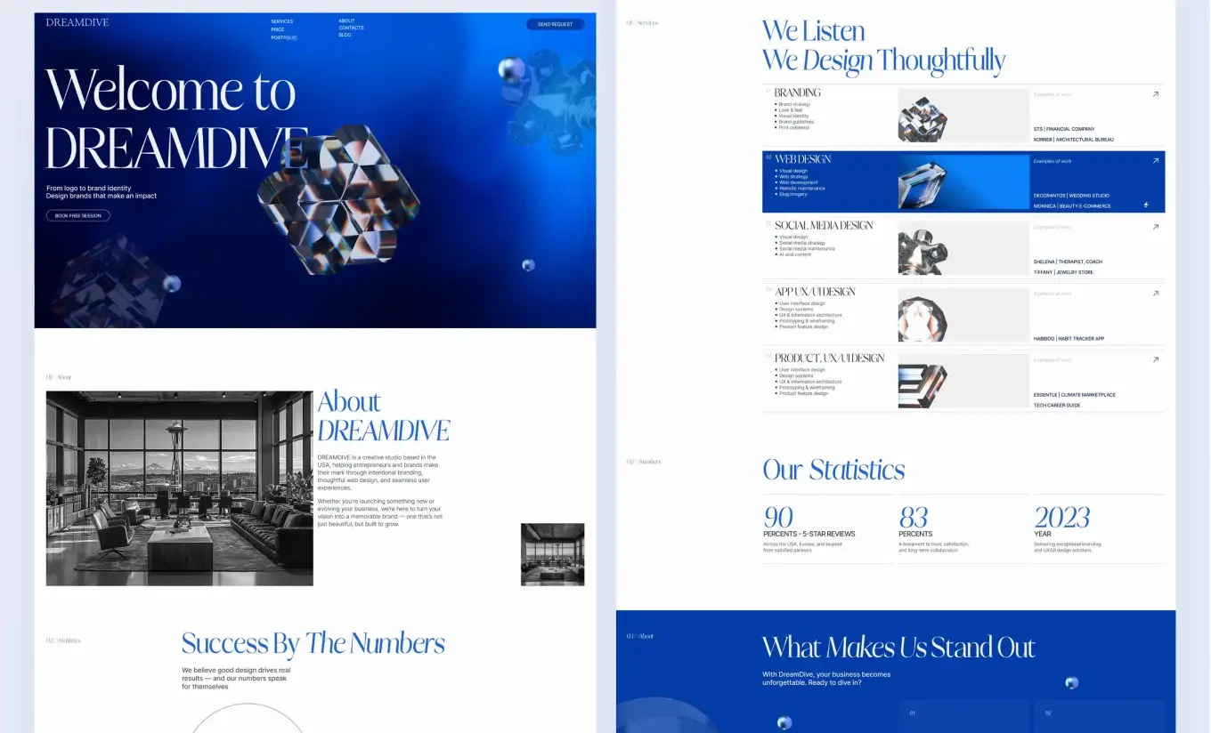 Иногда выразительность — это не то, что добавлено, а то, что убрано. Большие отступы, пустые блоки, нецентрированные элементы создают ощущение современности и уверенности.