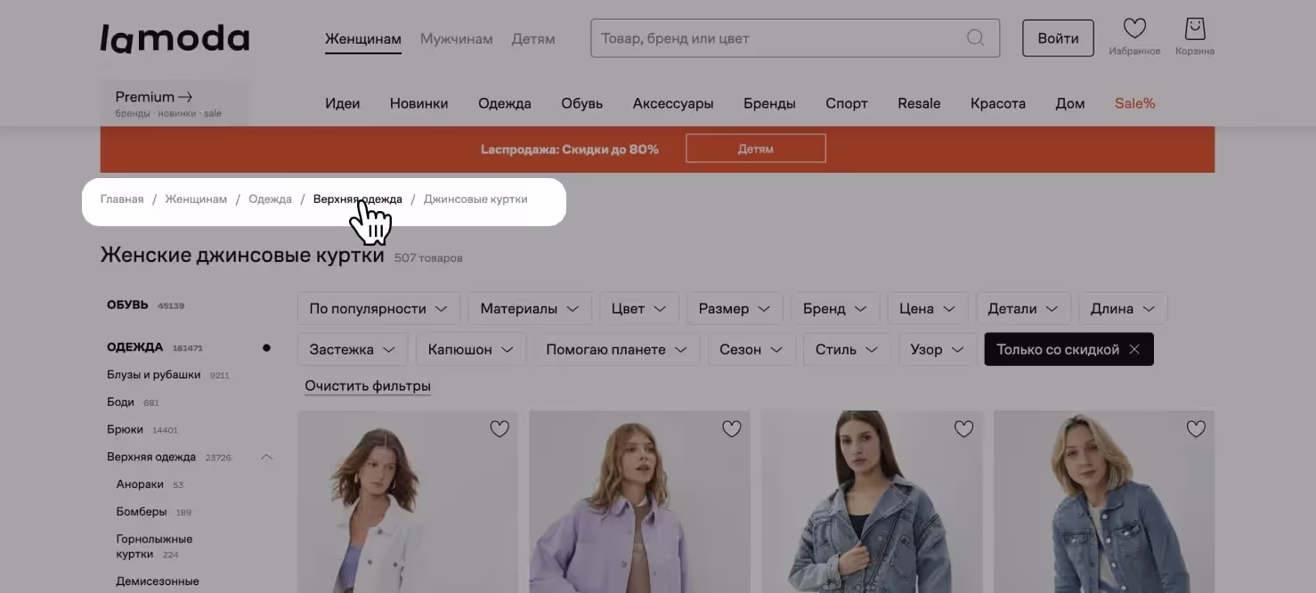 Навигационная цепочка, которая показывает весь маршрут пользователя на сайте. Она находится на всех страницах, кроме главной, и используется в том случае, если на ресурсе больше трех разделов.
