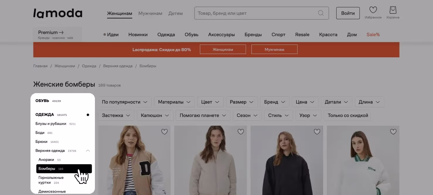 Элемент используется при большом ассортименте товаров и помогает пользователю выделить основные характеристики, чтобы быстро найти нужную вещь.