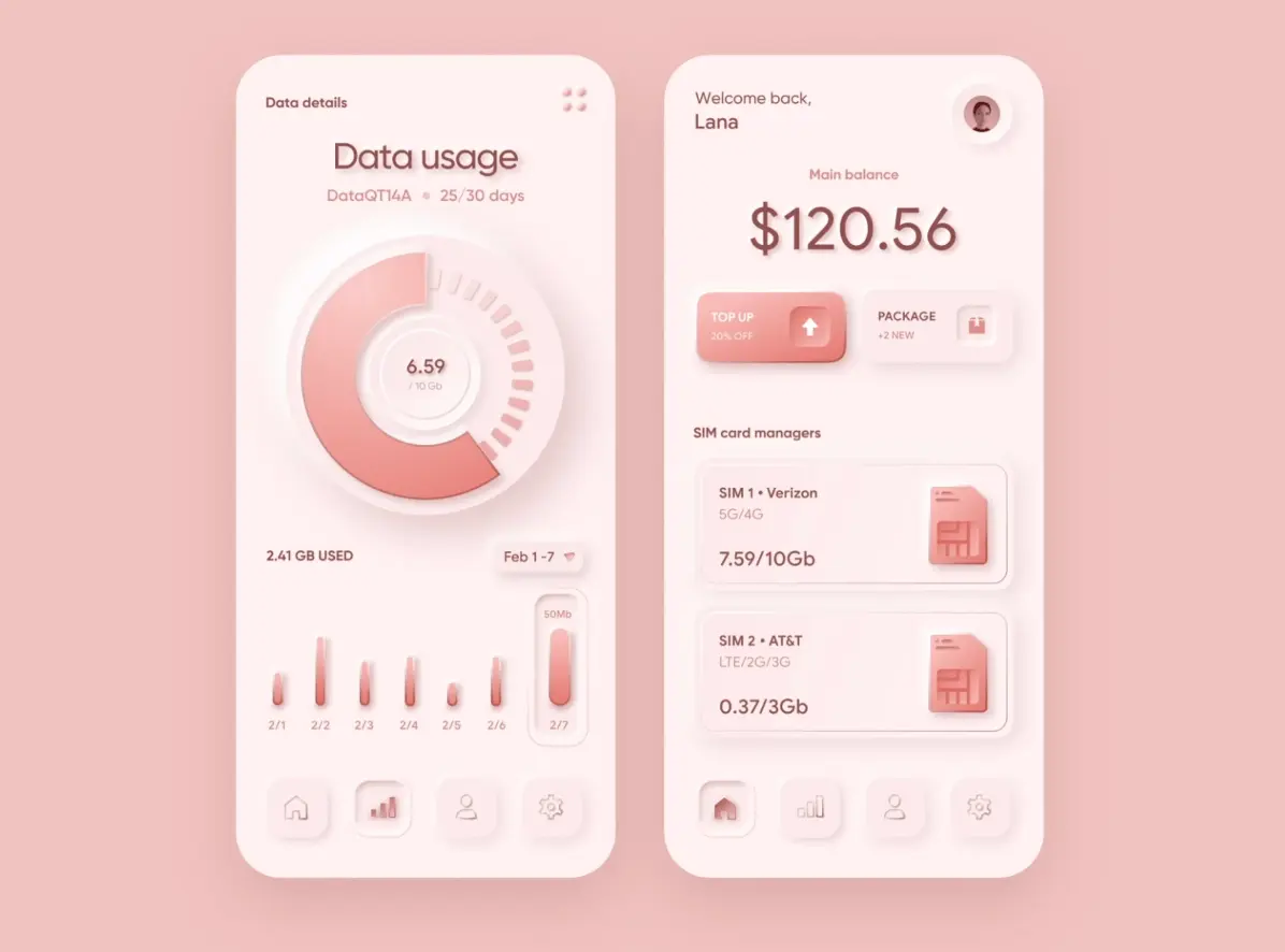 Неоморфизм объединил лучшие черты скевоморфизма и минимализма, создав новый визуальный язык — мягкий, объемный и технологичный. Он выделялся на фоне однообразных плоских интерфейсов и позволял дизайнерам экспериментировать с формами, светом и материалами.