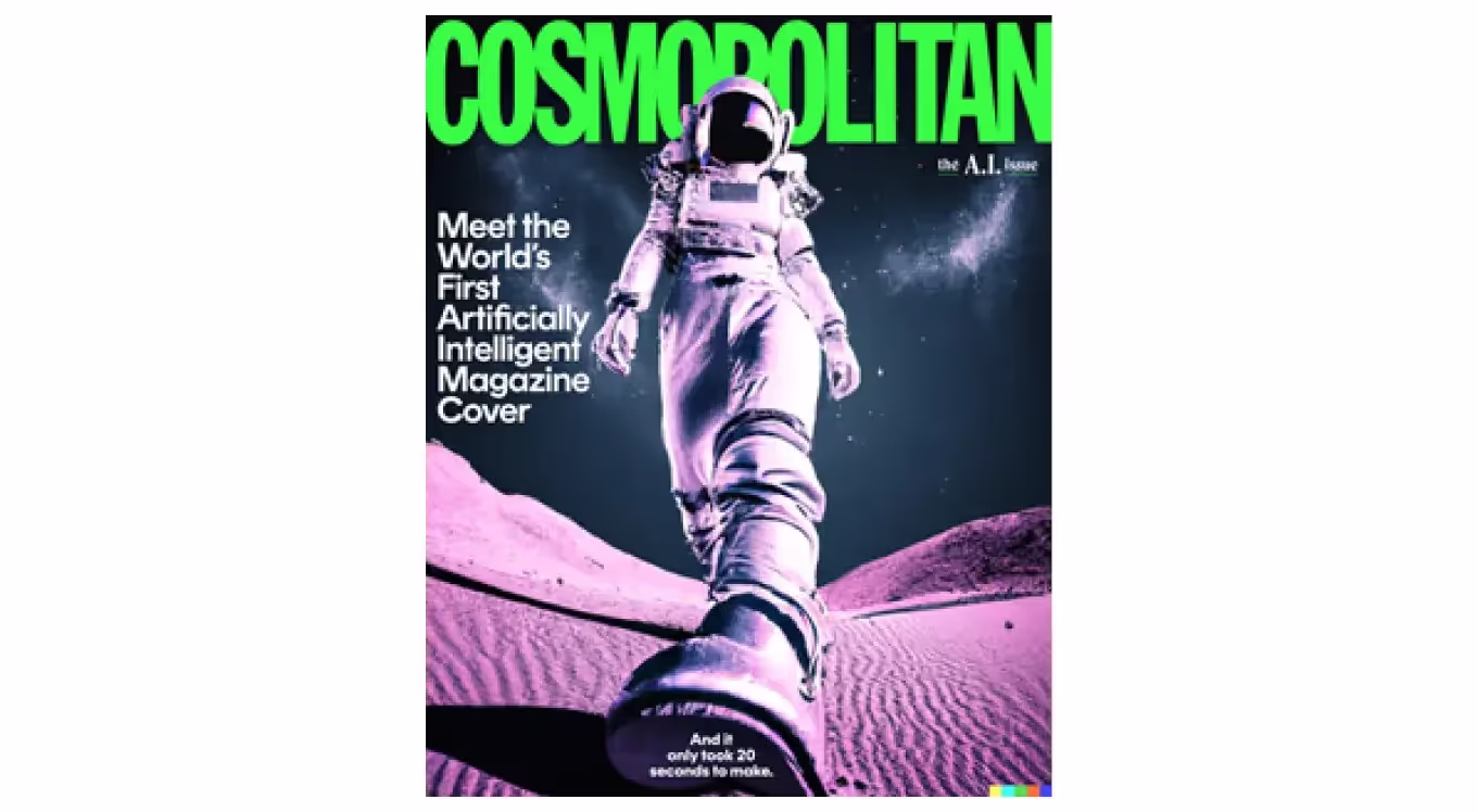 В июне 2022 года на обложке журнала Cosmopolitan появилась женщина-астронавт, созданная нейросетью DALL·E 2. Запрос был следующий: «Сильная женщина-президент-космонавт-воин, идущая по планете Марс, цифровое искусство, синтвейв».