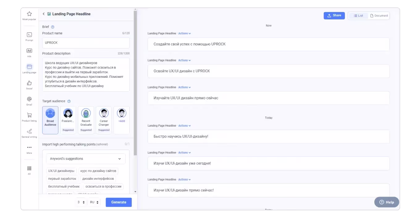 Пример от нейросети Anyword: