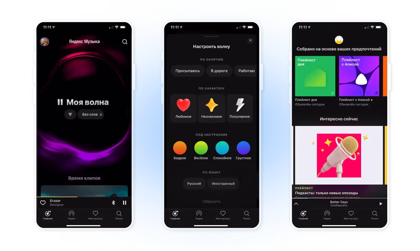 В продуктах, которые направлены на предоставление персонализированного контента и учета индивидуальных особенностей пользователя, онбординг включает в себя установку определенных настроек. Например, в Яндекс.музыке при первой сессии можно выбрать предпочитаемые жанры, исполнителей, в соответствии с которыми далее будут предлагаться похожие композиции.