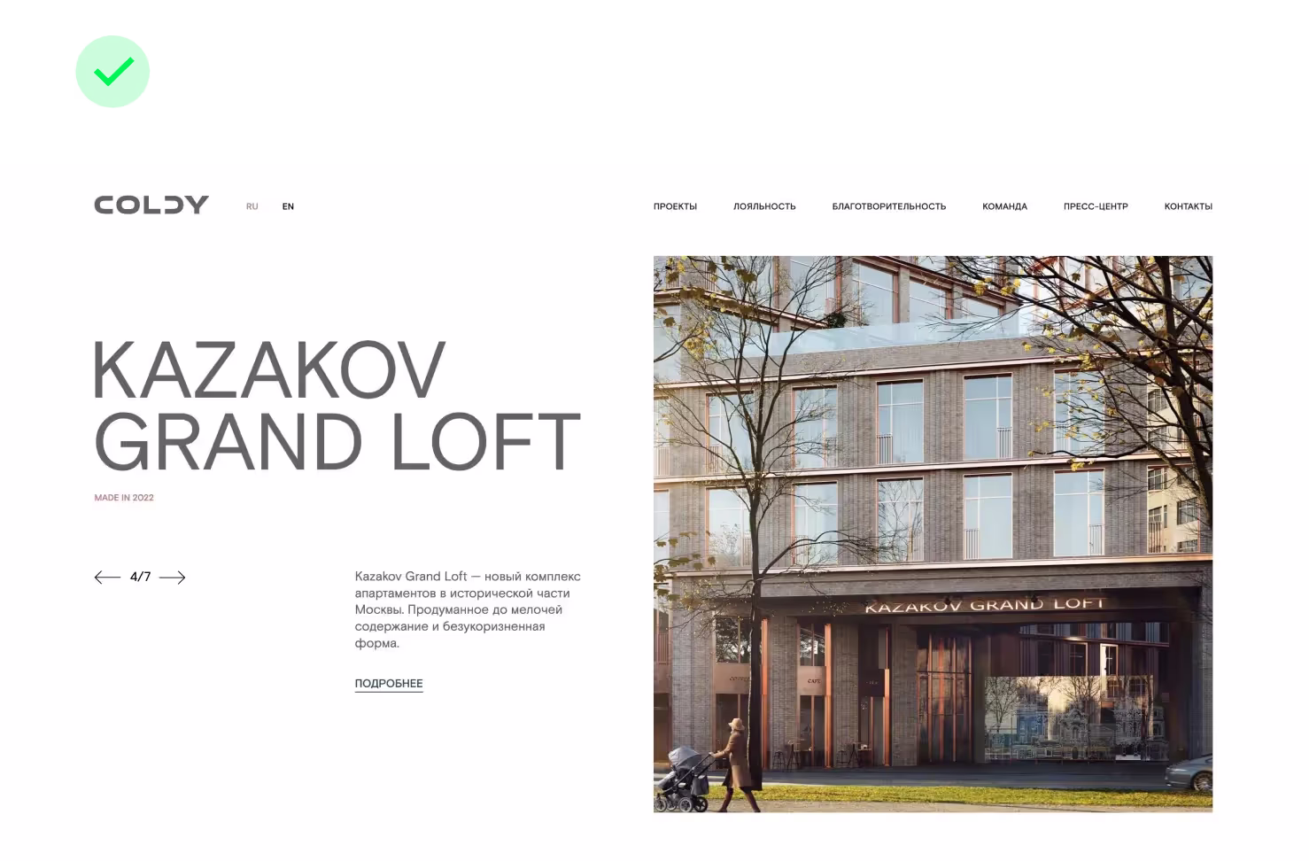 В представленном примере наибольший визуальный вес имеет изображение, а не текст расположенный справа от него. Это достигается благодаря яркому цветовому акценту.