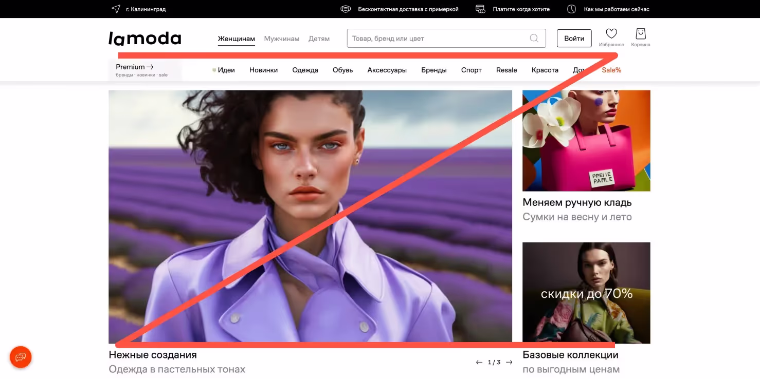 Зоны, которые получают больше всего внимания — это верхняя левая и нижняя правая. Именно в этих зонах рекомендуется располагать ключевые объекты на странице: в верхней левой части экрана располагают заголовок, например, название компании/коллекции/продукта, в нижней правой части экрана обычно располагают формы подписки, кнопки призыва к действию, формы заявки.