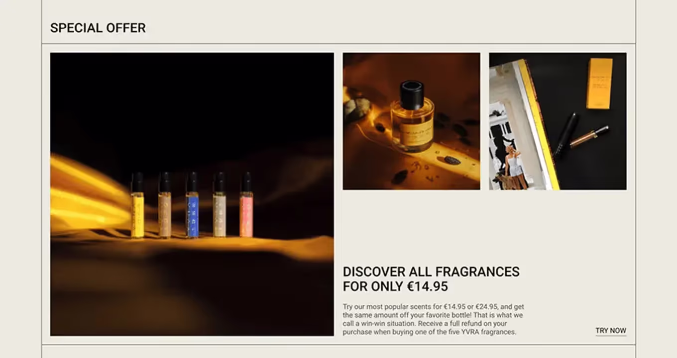 - Текст, фото и кнопка призыва к действию (CTA) должны считываться как разные группы, то есть расстояние между ними — внешнее.