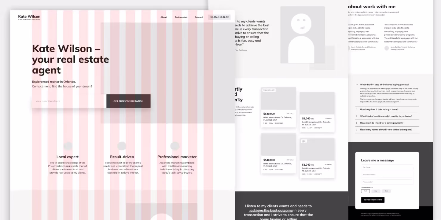 - Добавьте контент — тексты, фото. Если собственный контент пока не готов, можно взять его у конкурентов или со стоков — главное, чтобы итоговый вид прототипа был приближен к реальности. Кое-где с текстом придется поработать самостоятельно: перефразировать заголовки, назвать кнопки. Пишите логично и сформулировано: у пользователя должно быть четкое понимание того, что произойдет, когда он нажмет на кнопку — переход на другую страницу (куда?), открытие формы, появление информации и так далее.