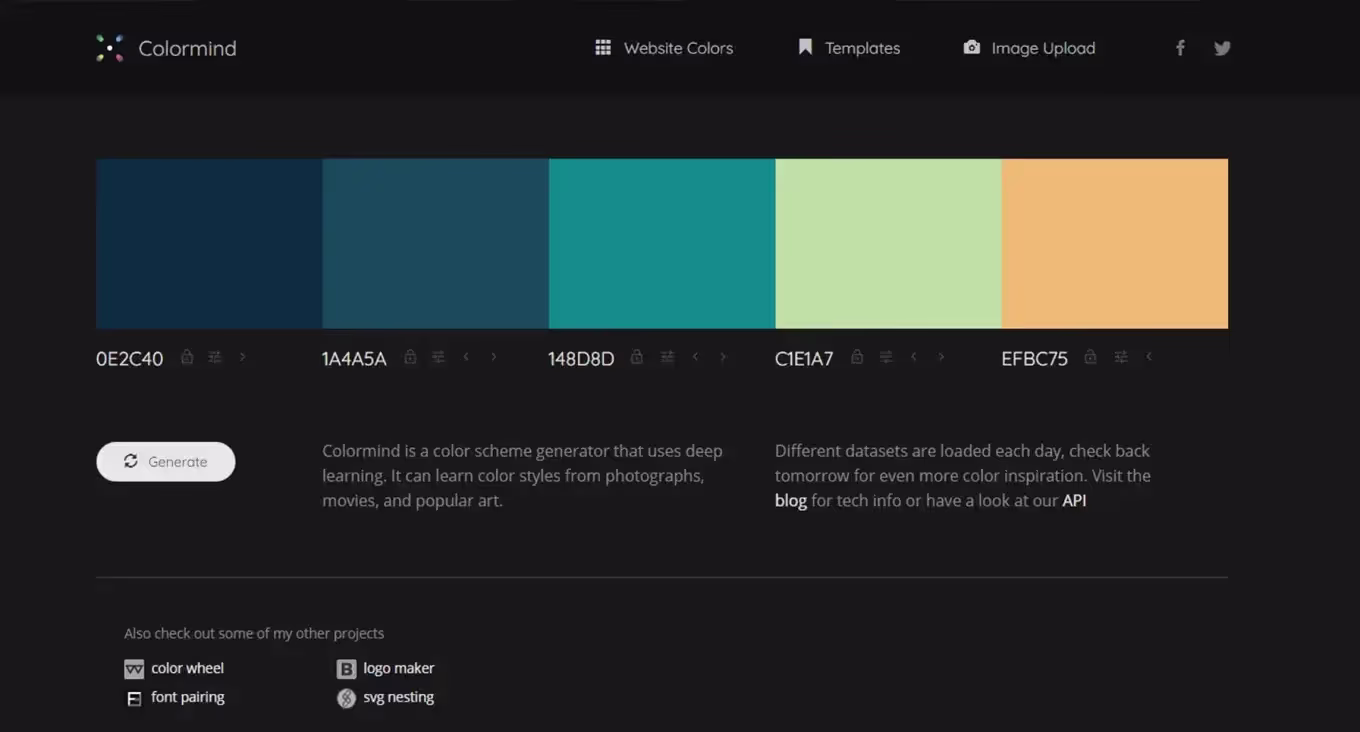 Colormind также генерирует цветовую палитру, но у данного сервиса есть интересная фича — он может использовать цвета из загруженных пользователем изображений. Сервис собирает информацию о всех цветах изображения и подбирает цветовую палитру с использованием цветов, которые максимально сочетаются друг с другом. Это позволит дизайнеру гармонично сочетать картинки и цвета интерфейса. Сервис бесплатный.
