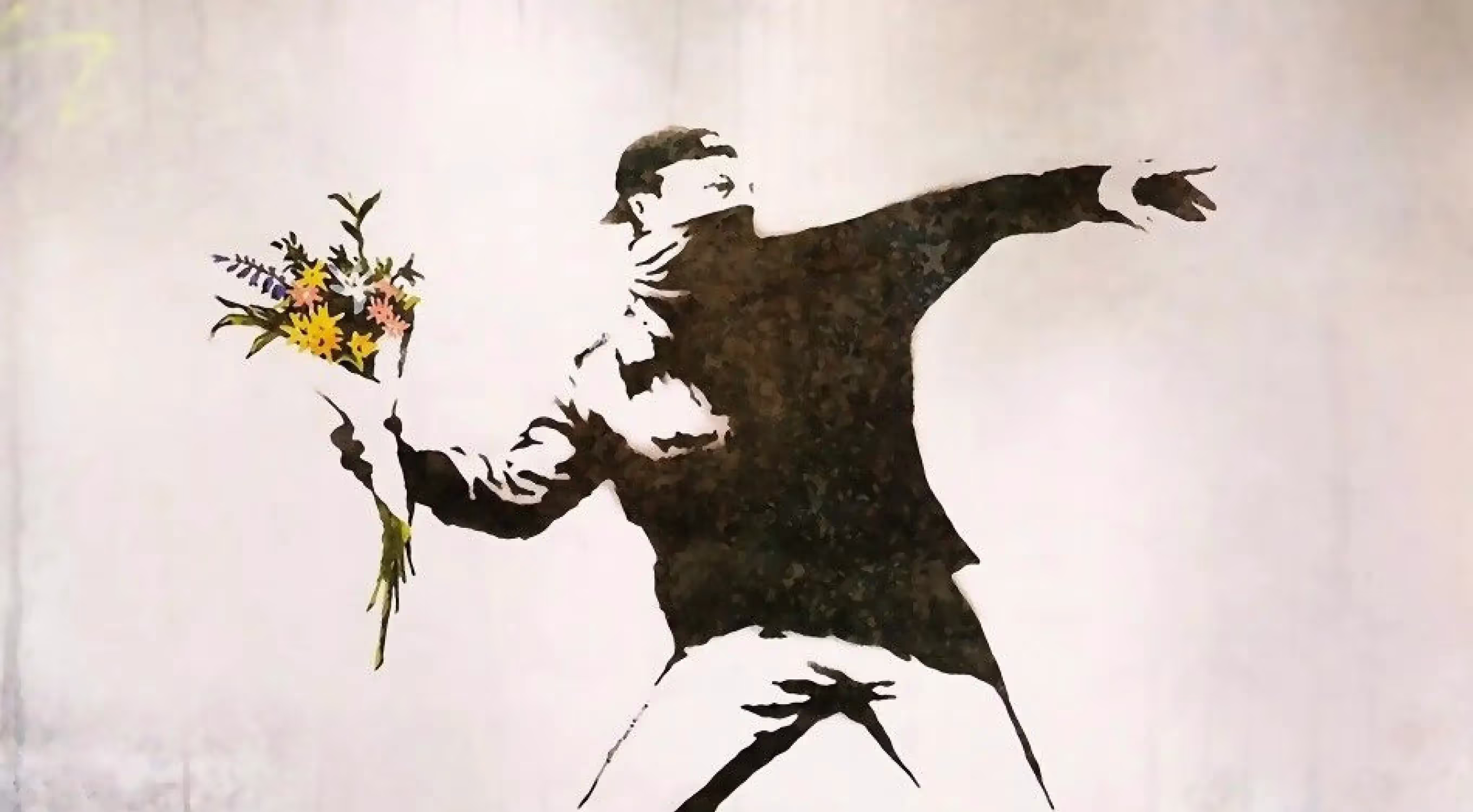 В его работе «Бросающий цветы» (Flower Thrower) изображен человек, готовящийся бросить букет цветов, как если бы это был коктейль Молотова. Каламбур заключается в контрасте между актом агрессии и символом мира, превращая протест в послание любви и перемен.