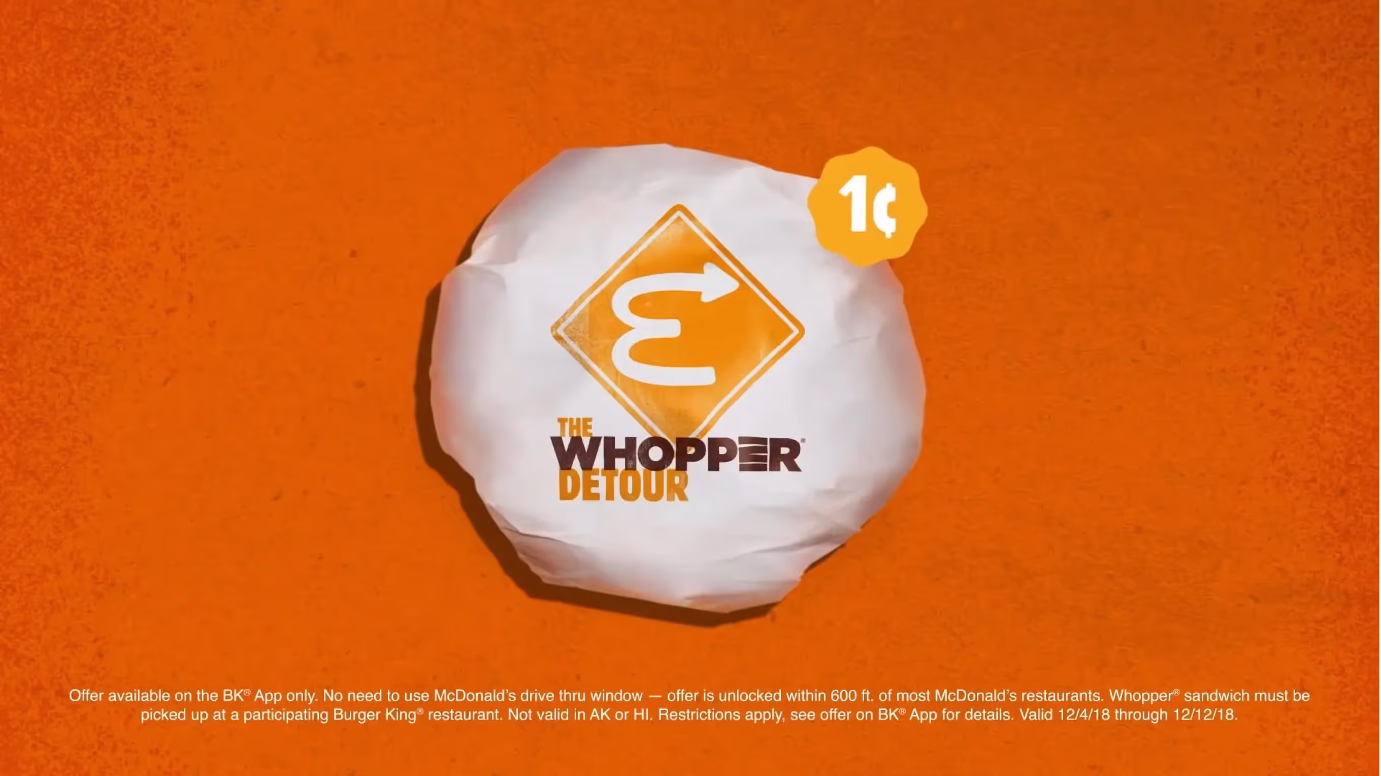 Кампания предлагала пользователям купить бургер за 1 цент, если они находились рядом с конкурентом (McDonald's). Само название «Whopper Detour» обыгрывает идею «объезда» и заставляет пользователя совершить неожиданный шаг.
