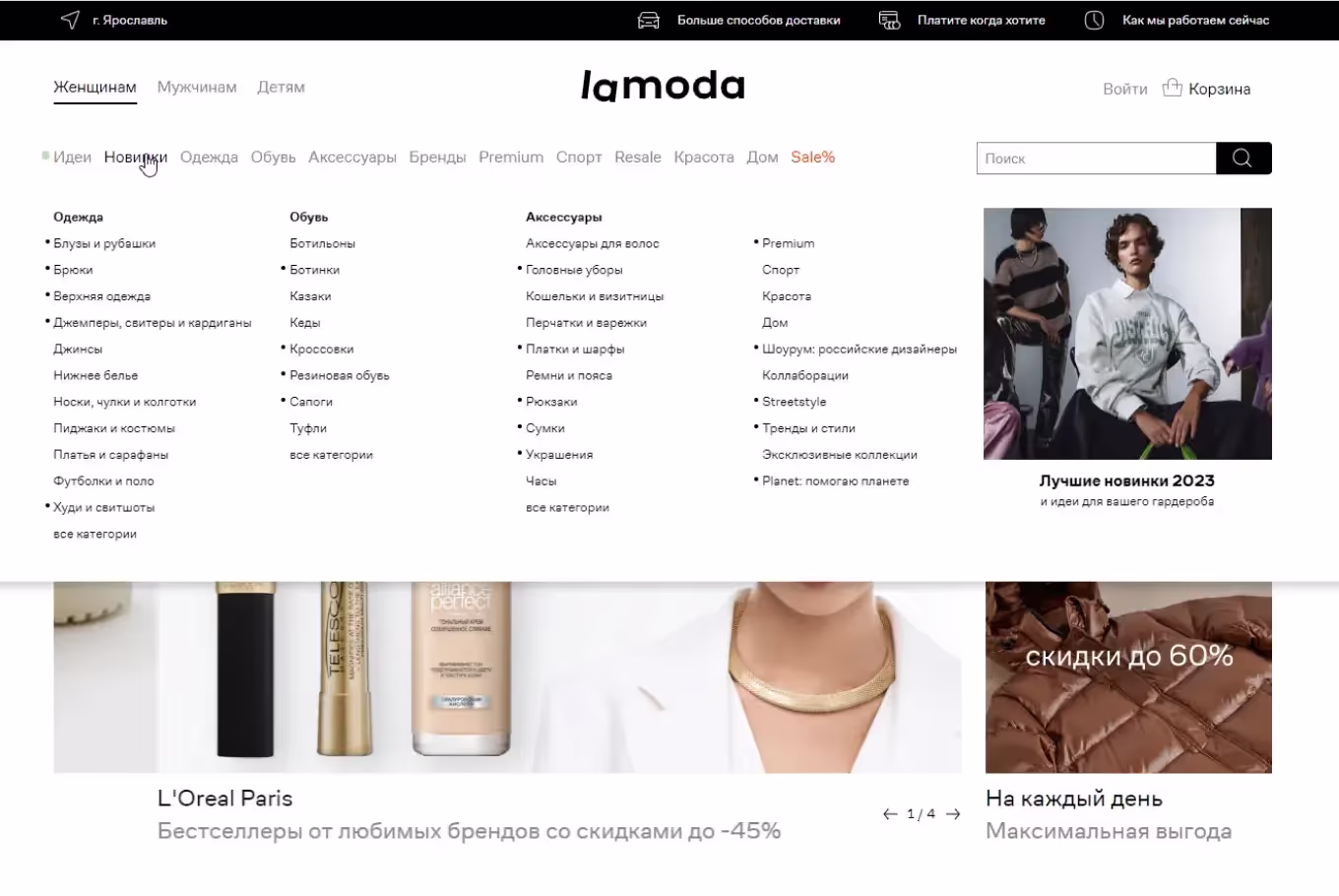 В навигационном меню использование волшебного числа семь не обязательно. Здесь более уместен принцип группировки или чангинг. Например, на сайте интернет-магазина Lamoda количество навигационных ссылок превышает семь, но при этом список легко просматривается благодаря четкому распределению по категориям для разделения подгрупп. Самые популярные категории отмечены для удобства пользователей.
