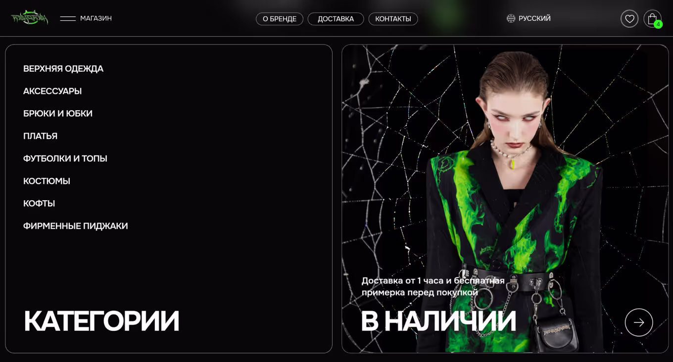 - Корзины покупок. Иконка корзины привычно находится в верхнем правом углу сайта, по клику можно увидеть и отредактировать содержимое.