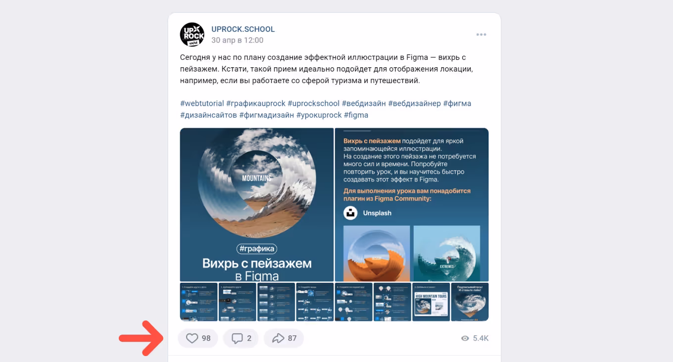 - Кнопки «Поделиться», обозначение лайков и комментариев. Стандартные иконки для социальных сетей (ВК, Одноклассники, ТГ и др.) для быстрого обмена контентом.