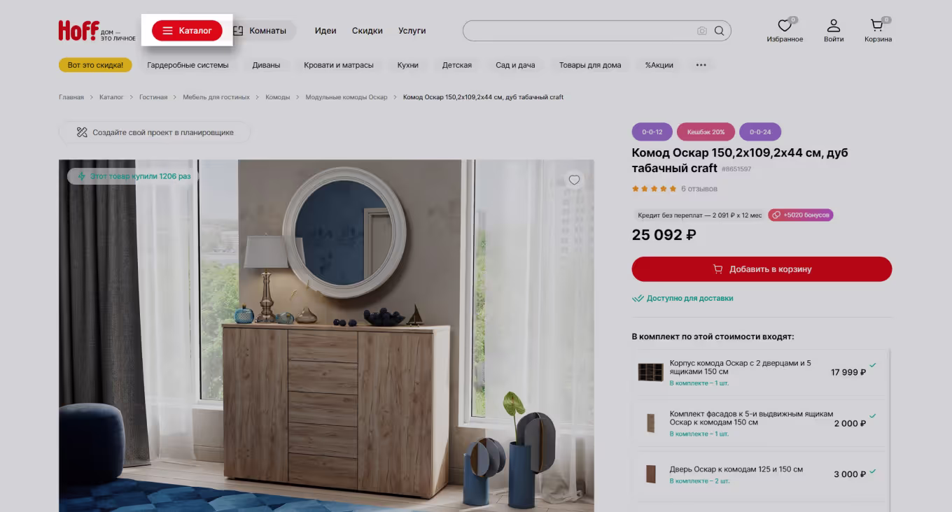 В данном примере за иконкой гамбургера прячется полный каталог.